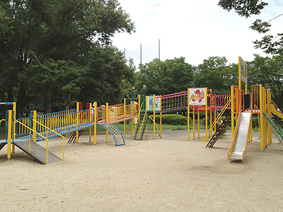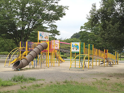 【施設】木製遊具(アスレチック)、せせらぎ水路(8、9月の祝日・土日限定の水遊び場)、野球場、400メートルトラック、サッカー場、テニスコート