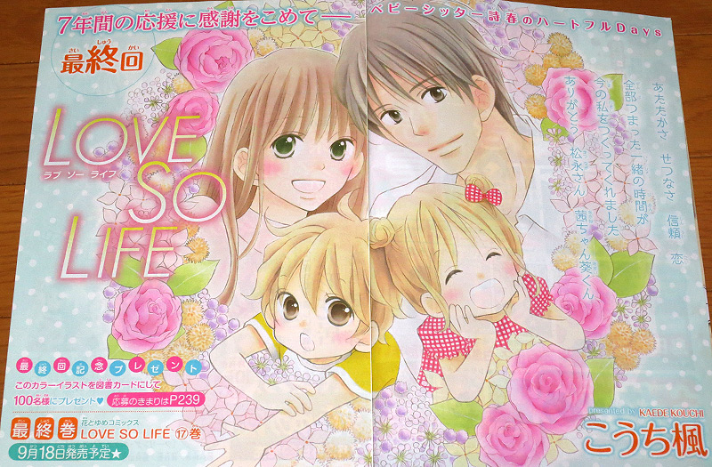 花とゆめ16号(2015年8月5日号)でこうち楓先生の「LOVE SO LIFE」が最終回を迎えました