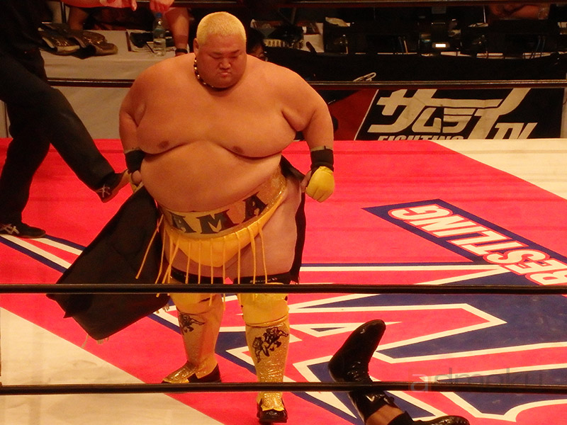 大相撲八角部屋所属の力士として活動していたこともある浜亮太選手は200kgを超える巨体。この巨体との対戦も違う意味で見もの。