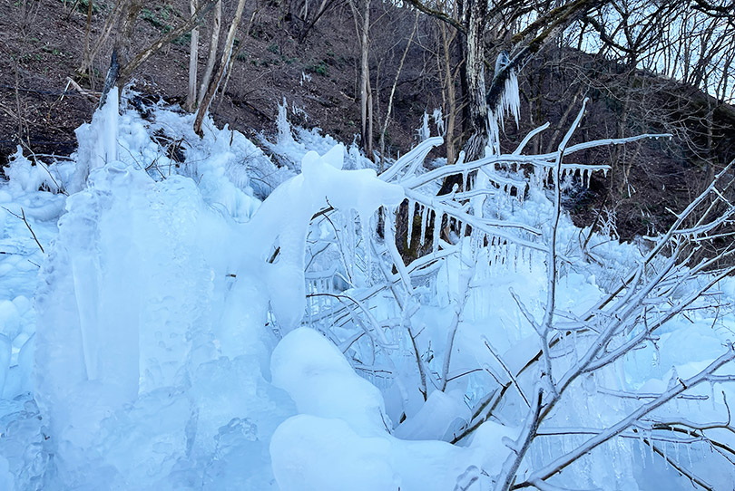 人工的につくられたとはいえ、木の枝々についた氷が神秘的かつ芸術的。