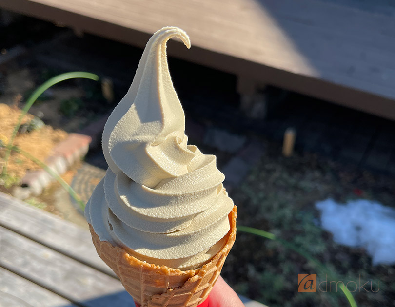 戻ってきたら紅茶のソフトクリームというのに目が行き、寒いのに外で食べました。