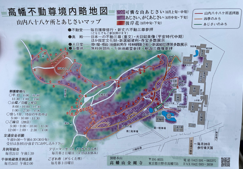 境内に入ると、「高幡不動尊境内略地図 山内八十八ヶ所あじさいマップ」なるものが配布されているので、もらうことをおすすめます。