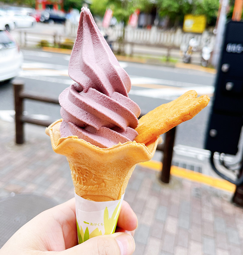 カレーを食べて駐車場へ戻る途中に気になったのが、季節限定のあじさいソフトクリーム(350円)。