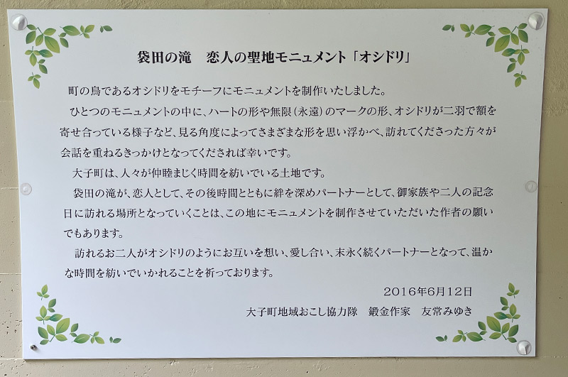 若い人を取り込もうとしているのか、恋人の聖地モニュメント「オシドリ」という友常みゆき氏による作品が展示されています。