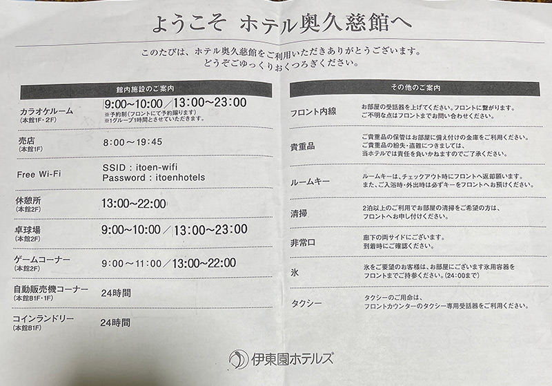 伊東園ホテルグループは廉価版ホテルチェーンなので様々なところにコスト削減をしているところが垣間見えます。