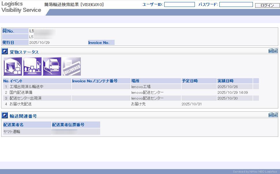 - 10月26日にlenovo工場出荷済&輸送中