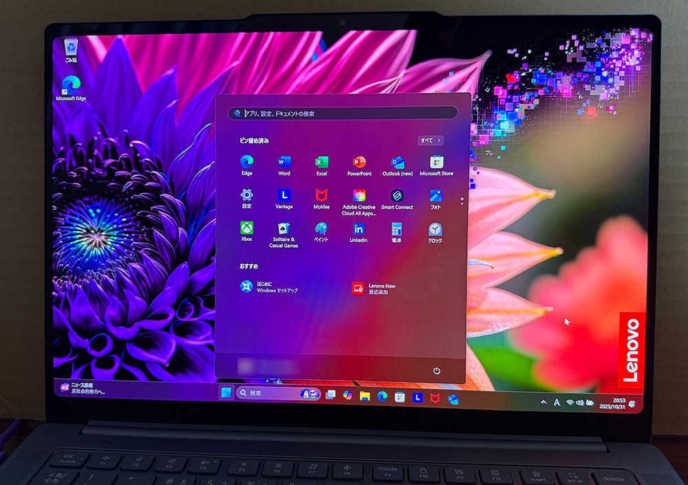 2025年10月24日にLenovoのWindowsノートパソコン『Yoga Pro 7i Gen 10 Aura Edition(14型 Intel)』を購入しました。
