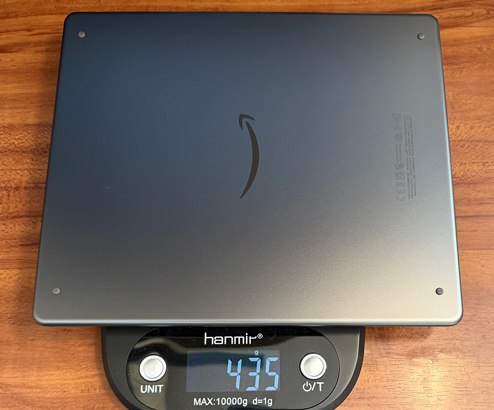 Kindle Scribeはそれよりも50g軽いですが、それでも長時間読むならスタンドが欲しくなる重さではあります。
