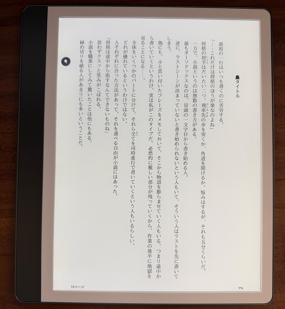 ページ送りが遅いだとか若干残像が残るとか、そんな欠点よりも目に優しい、それだけで選んだ甲斐があるというもの。