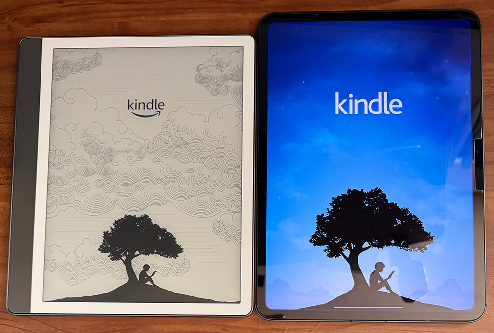 当たり前ですが、iPadはカラーが鮮やかで美しいし、反応もスムーズ。使っていてストレスはありませんが、目が疲れてしまうので、短時間なら良いですが、数時間単位で集中して読書する分には液晶パネルは辛いです。
