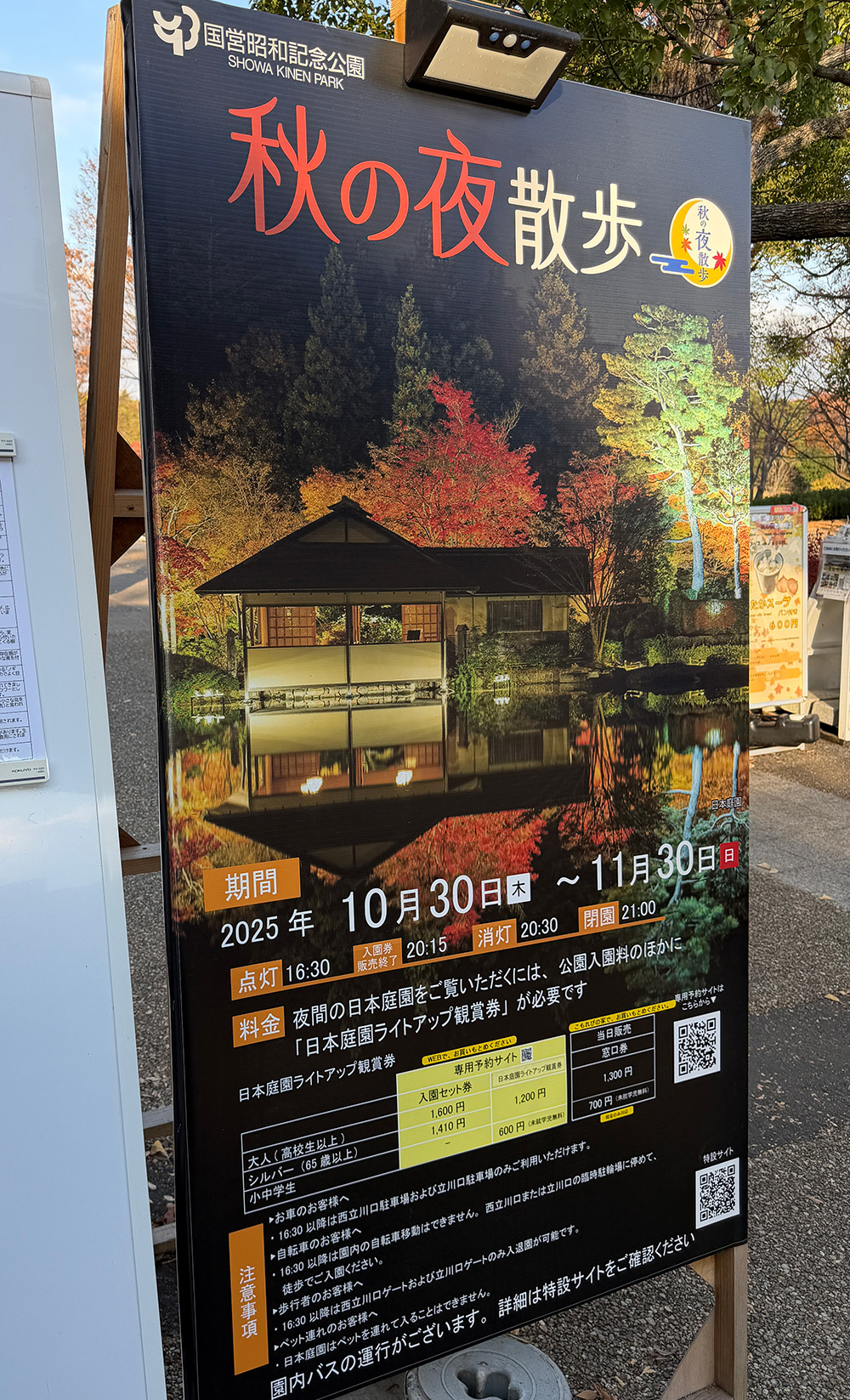 2025年11月29日、国立昭和記念公園へ秋の夜散歩へ行ってきました。