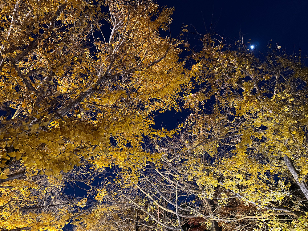 ライティングによって、色づき始めでも見事な黄金色に変化し、紅葉初期は昼・夜で全く違う景色をご覧いただけます。