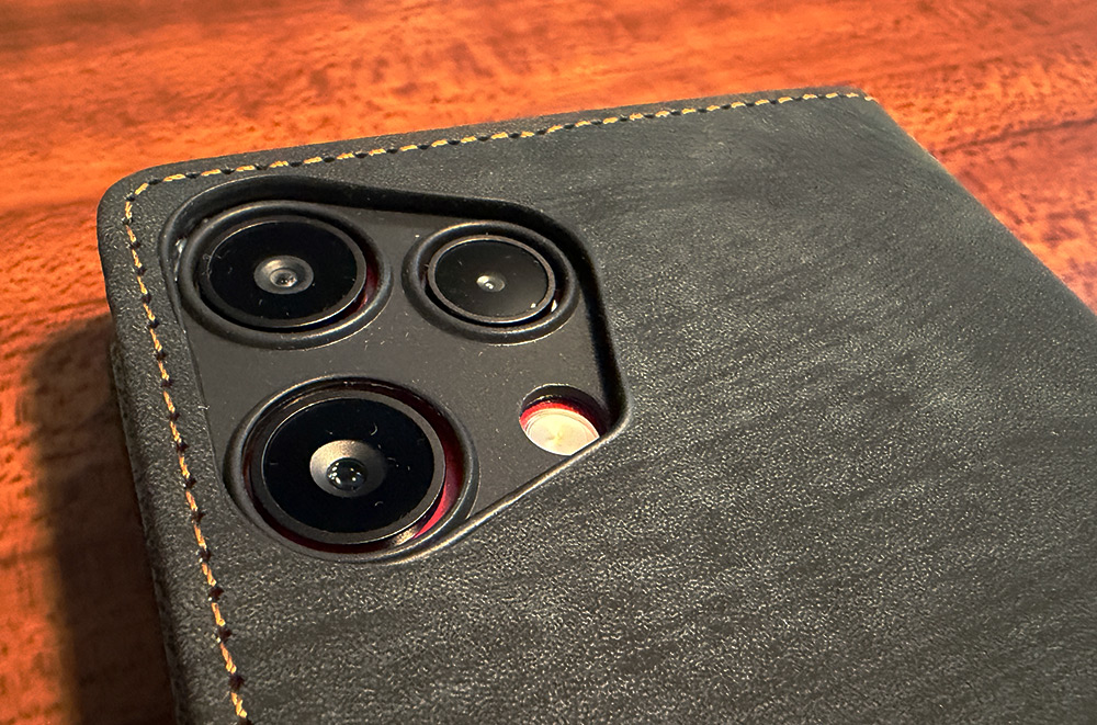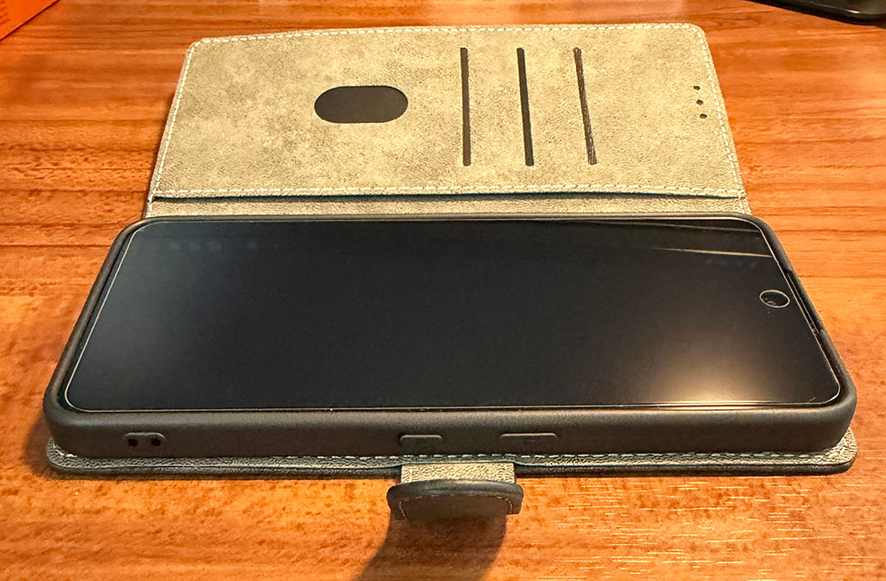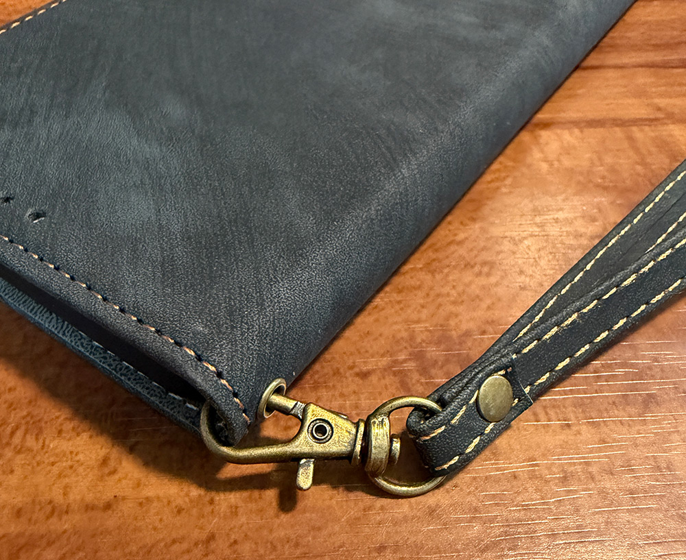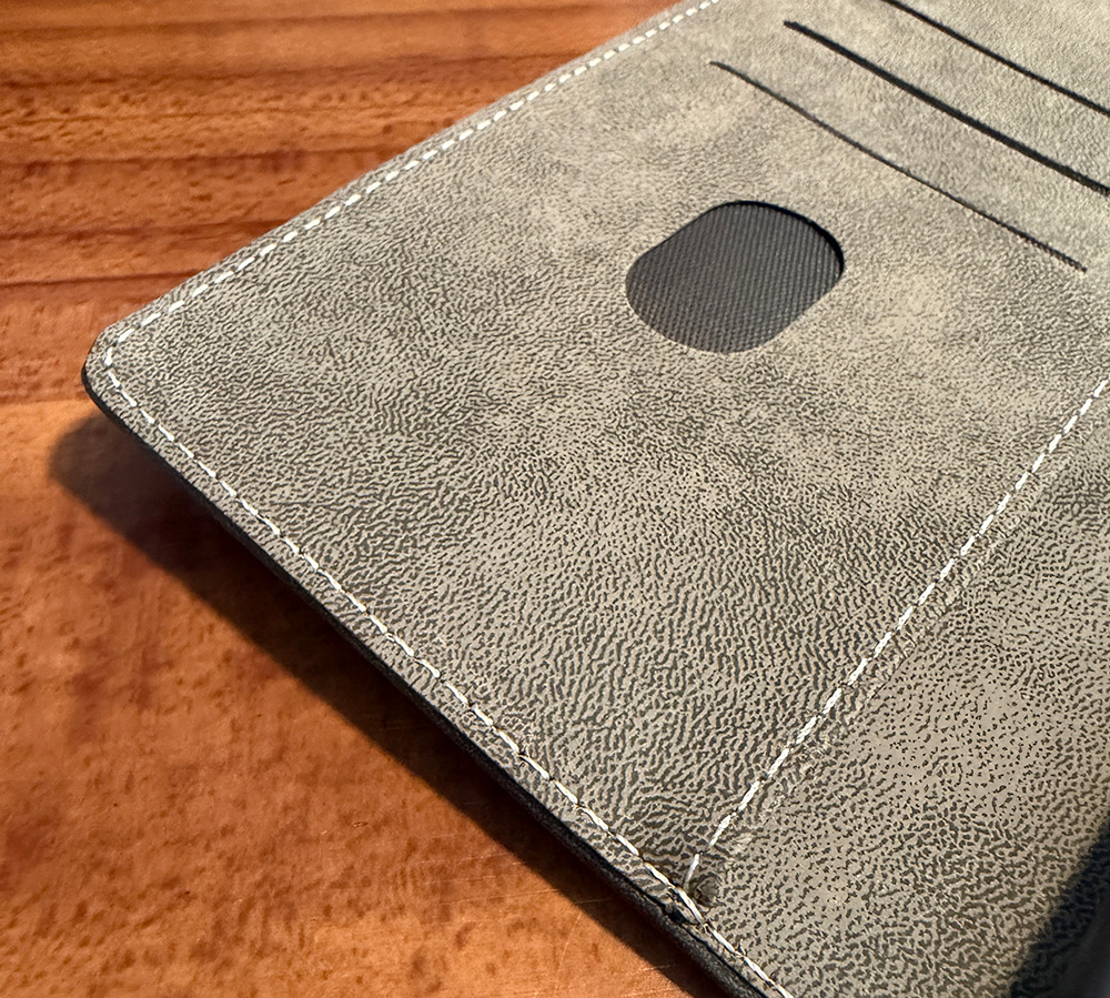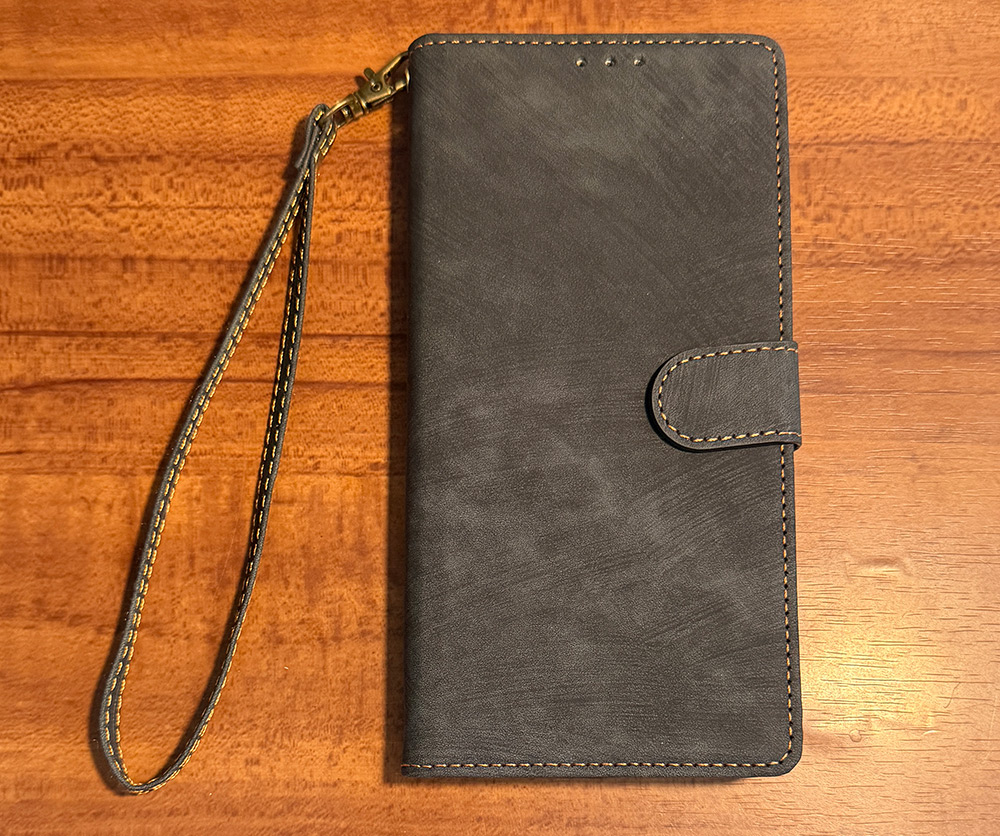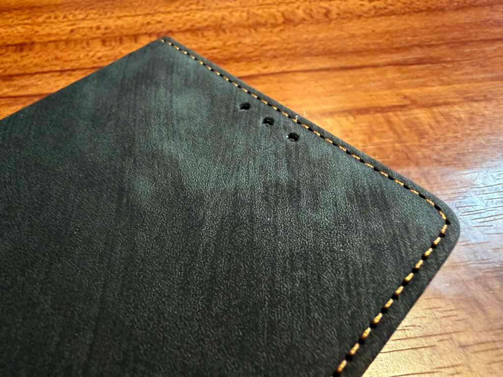 手帳型はいちいち開かないとチェックできないので日常使いには使いたくありませんが、年数回程度の使用で全体を守り、かつ劣化しずらいものを考えた末に行き着いたのが手帳型ケースです。