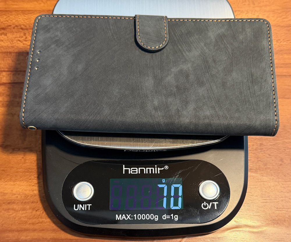 ケースの重さは70gで本体あわせると279gとずっしりとくる重さですが、サブ端末なら問題なし。