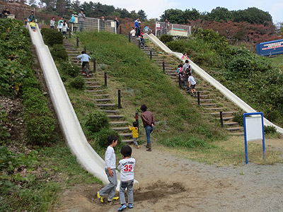 アスレチックとあわせて子供にウケがよかったのがこの滑り台。
