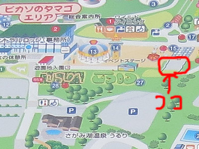 駐車場はさがみ湖リゾートのゲートを通過して駐車料金を払ったら、左方向に進み遊園地側の駐車場に停めます。