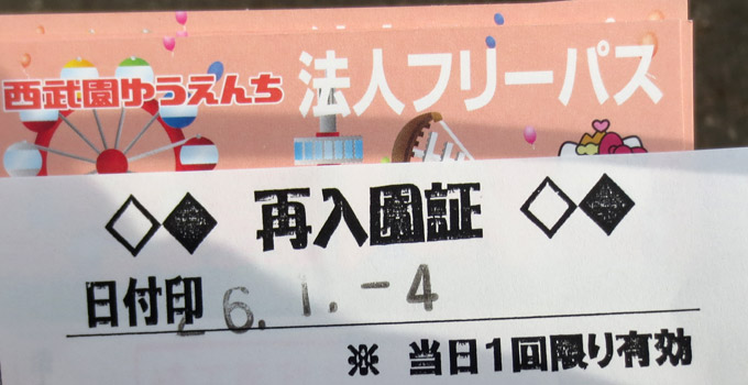 西武園ゆうえんちでは入口スタッフに言えば「再入場証」を発行してもらえます。