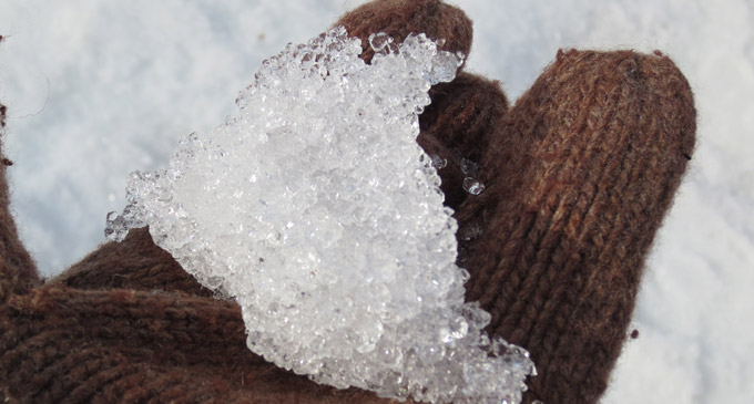 気になる雪の質ですが、写真のように小さい氷の粒という感じです。