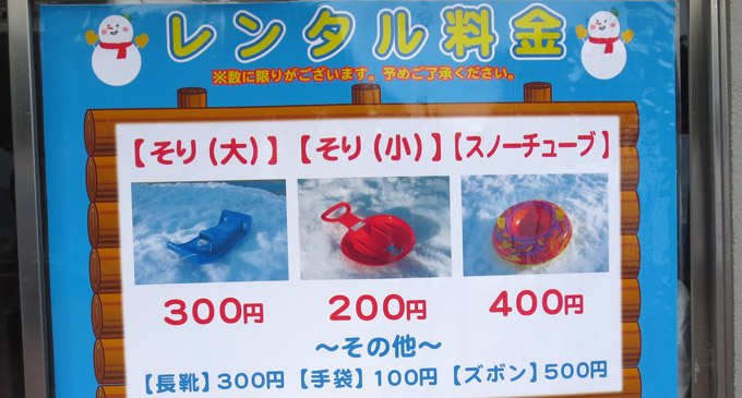 そしてそりや長靴、手袋等のレンタルもその横で可能です。