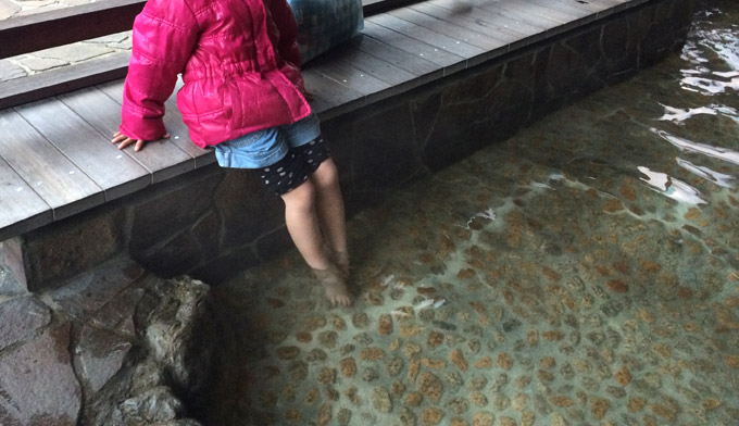6. 入って最初にかけ湯がありますので、ざっと汚れを洗い流します