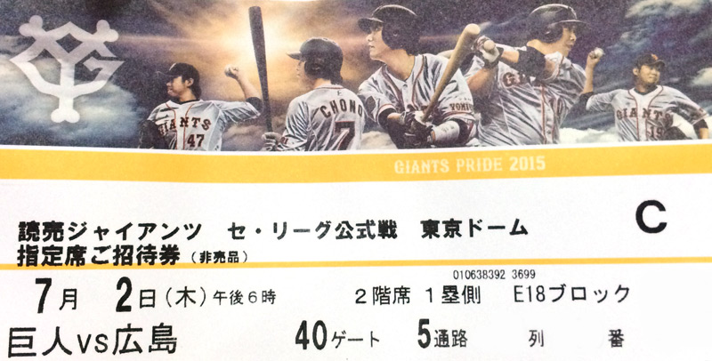 東京ドームの巨人VS広島のチケットを友人からいただいたので、観に行ってきました。