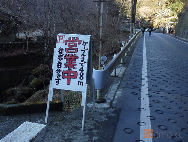 駐車場はケーブルカーの滝本駅から400m離れた徒歩8分のところに停めました。