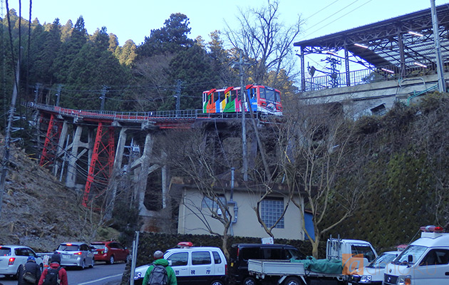 御岳登山鉄道のケーブルカー(https://www.mitaketozan.co.jp/)の滝本駅。