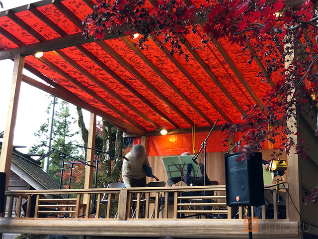 残念ながら子供と来ていたので、ライトアップされた紅葉を見ながらお酒片手にジャズを楽しむことはできませんでしたが、ジャズ好きにはたまらないステージになったことでしょう。