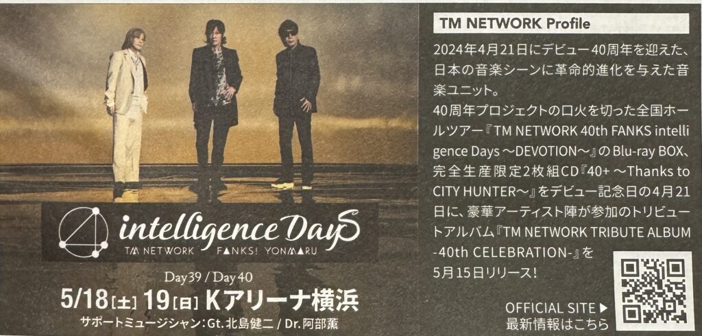 2024年5月19日 (日)に『TM NETWORK 40th FANKS intelligence Days ~ YONMARU』のライブへKアリーナ横浜へ行ってきました。