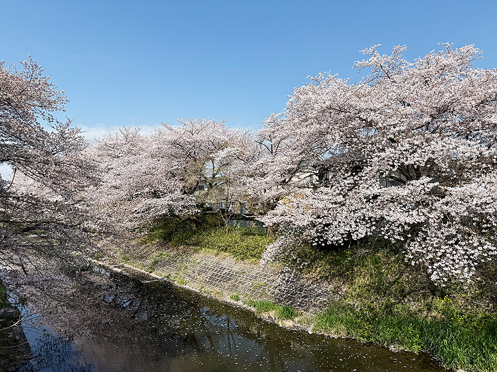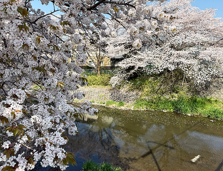 2025年4月12日に入間市の霞川で撮影した桜並木です。