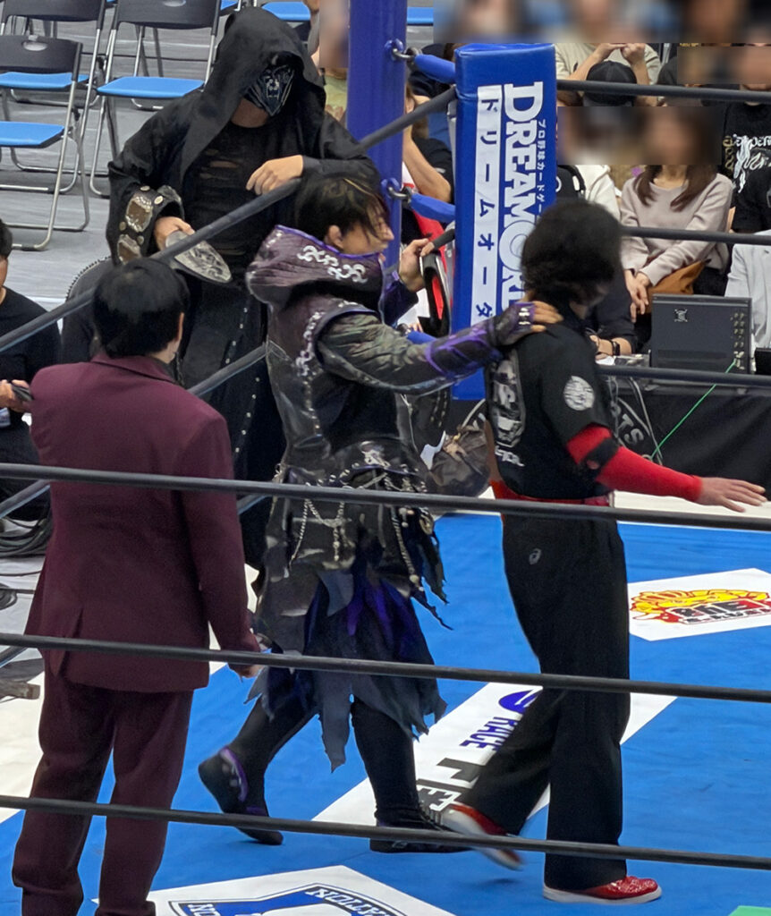 特に印象的だったのは、レフェリーが反則行為の場面でわざとそっぽを向いたり、選手が不自然に寝転がって見せる“猿芝居”のような演出が何度も繰り返されたことだ。