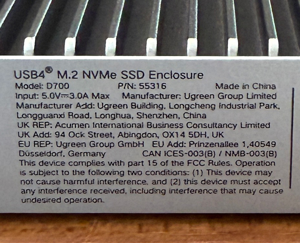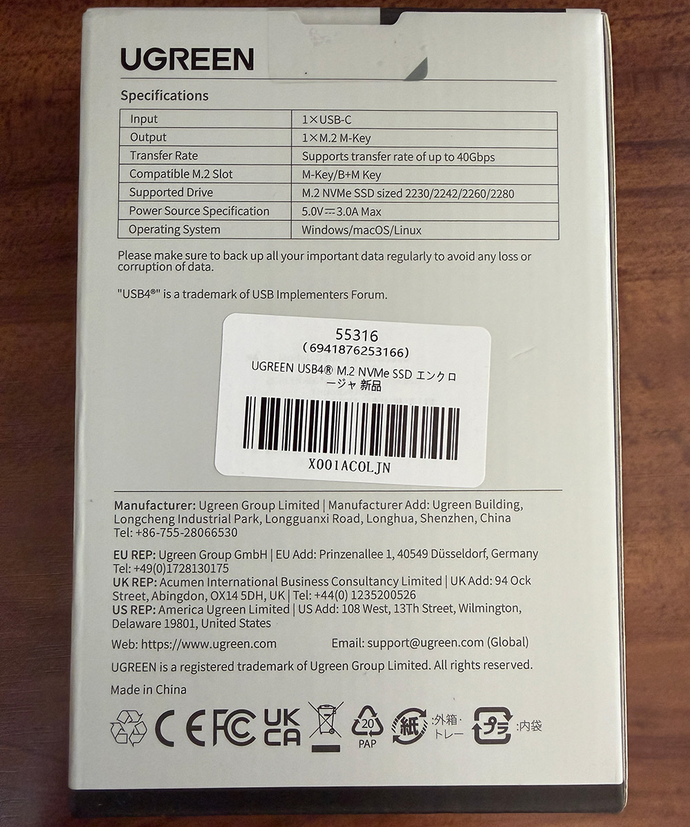 2025年11月2日にアマゾンで、『UGREEN 【USB4® 40Gbps】M.2 SSD 外付けケース M.2 ssd ケース Thunderbolt 3/4 PCIe 4.0×4対応 NVMe SSD ケース 2230 2242 2260 2280(M-Key M&B Key) SSD対応 USB C ケーブル付属』をスマイルSale特価30%オフの7,699円で購入しました。