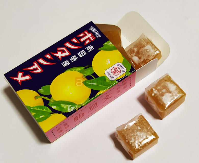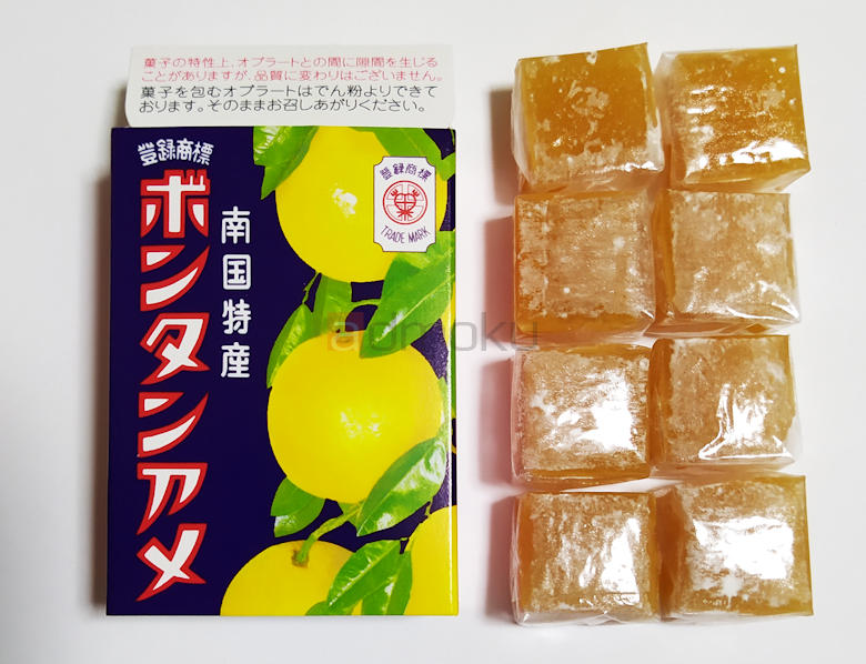ボンタンアメは、水飴、砂糖、麦芽糖、もち米が主原料で、それ以外の原料はすべて植物性のもの。この駄菓子の歴史は大正13年から販売されているというから、驚きです。