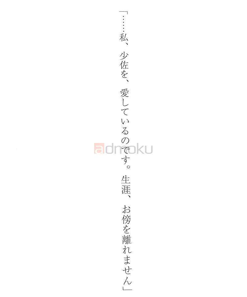 「私、少佐を、愛しているのです。生涯、お傍を離れません」